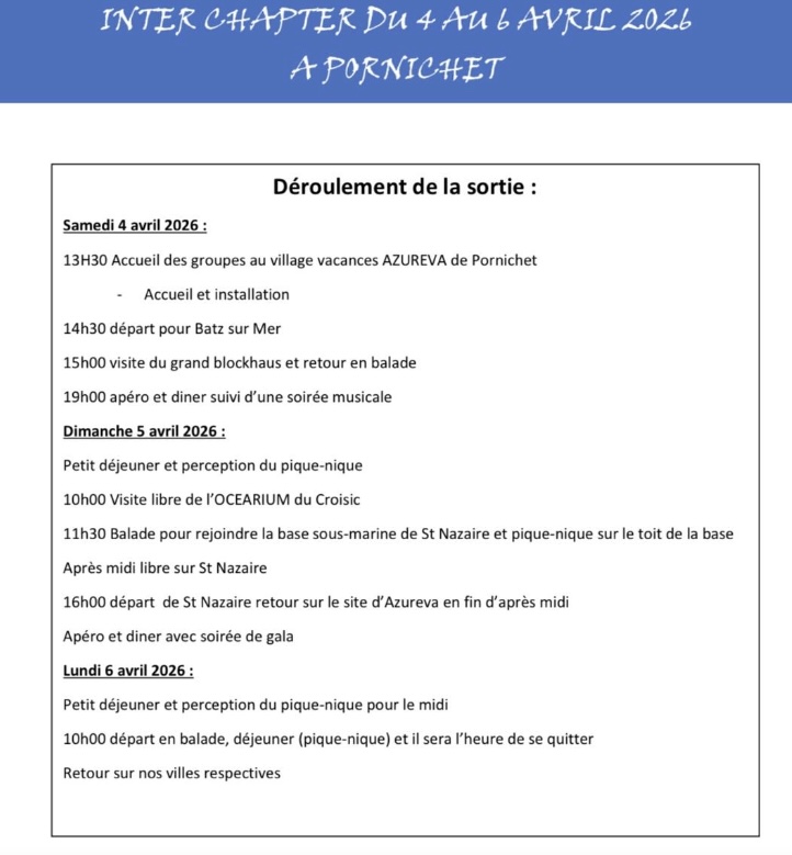 Voici la proposition faite par le West Independant Chapter France pour avril 2026
